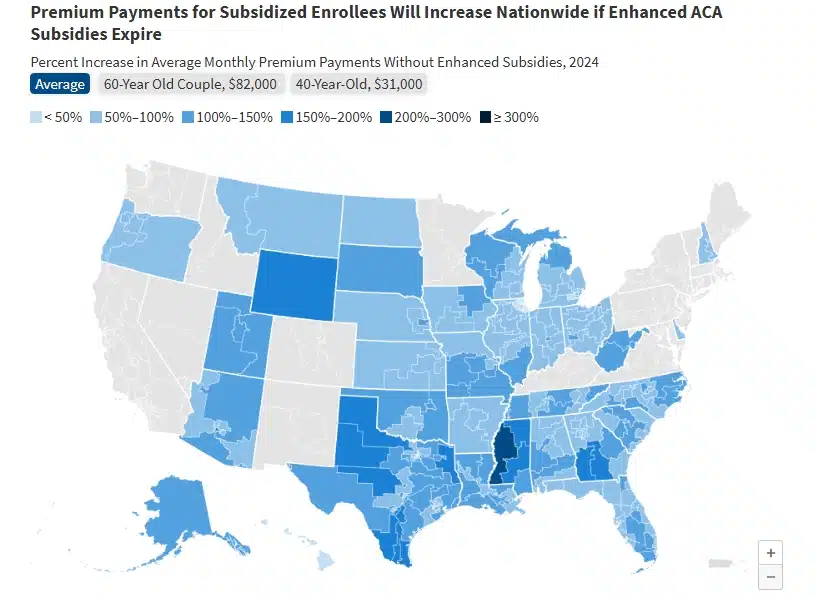 When November 2026 rolls around, if ACA participants are still paying these elevated premiums, as shown on the map below, I can’t imagine they’ll be feeling very good about their Republican representatives when they enter the voting booth.