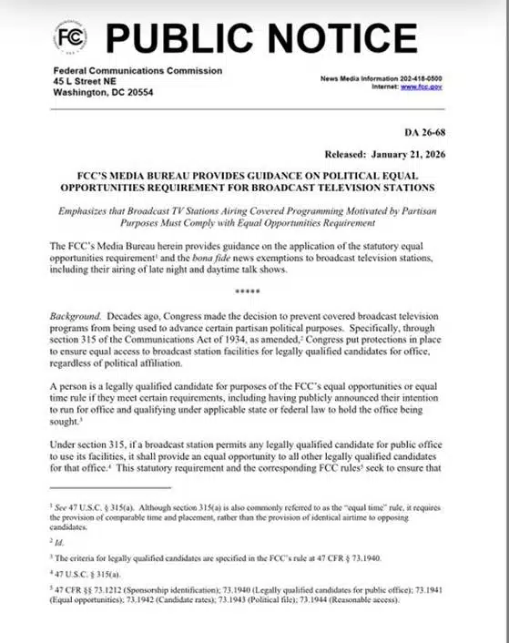 “For years, legacy TV networks assumed that their late-night & daytime talk shows qualify as “bona fide news” programs – even when motivated by purely partisan political purposes. Today, the FCC reminded them of their obligation to provide all candidates with equal opportunities.”