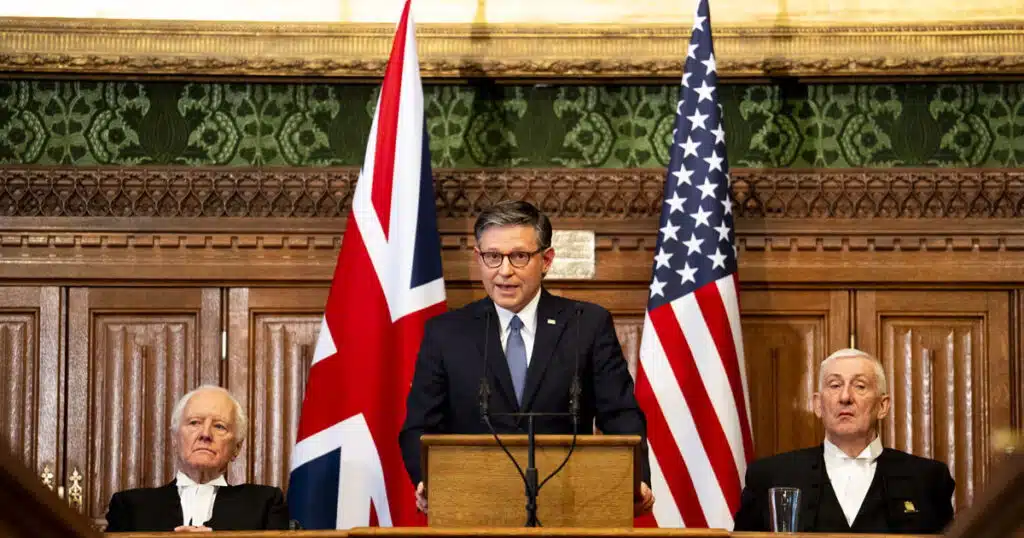 House Speaker Mike Johnson, R-La., addressed the United Kingdom Parliament Tuesday morning as President Donald Trump challenges Britain’s policies toward Greenland and the Chagos Islands.