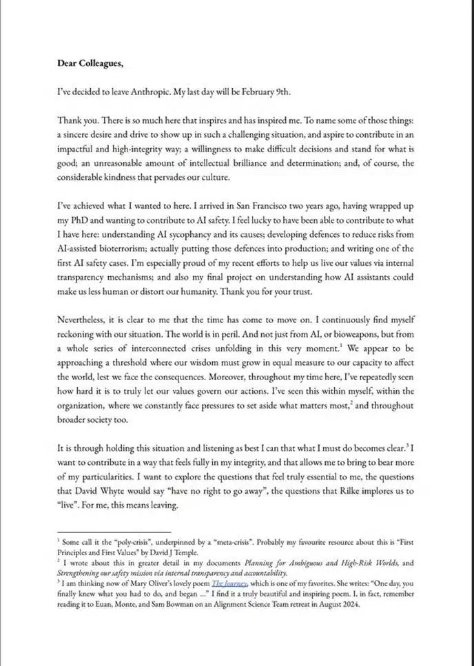Earlier this month, Mrinank Sharma, the head of AI safety at the company Anthropic, resigned from his position, but as the door was closing on this chapter of his career, he had some very concerning words for all of us as he left.